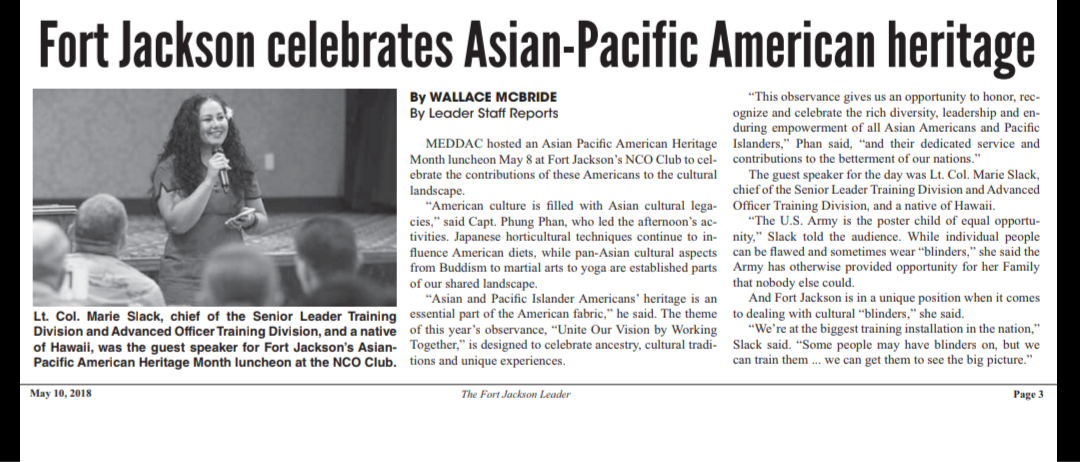Labels: blinders, equal opportunity, Fort Jackson, LTC Marie Slack, Officer, Pacific Island heritage, Samoa, South Carolina, U.S. Army